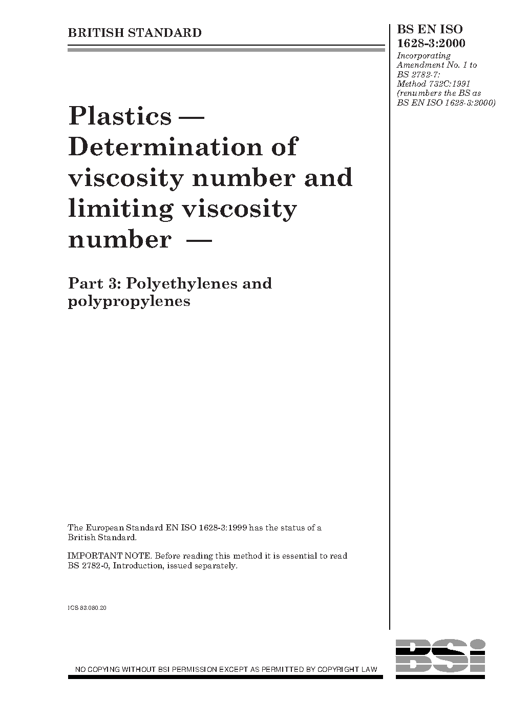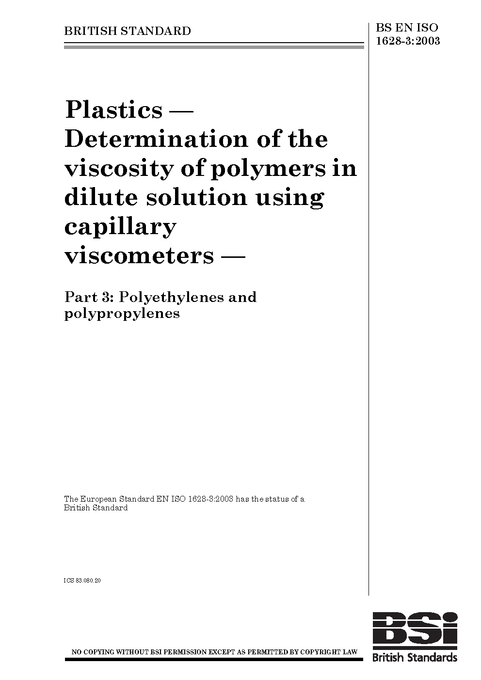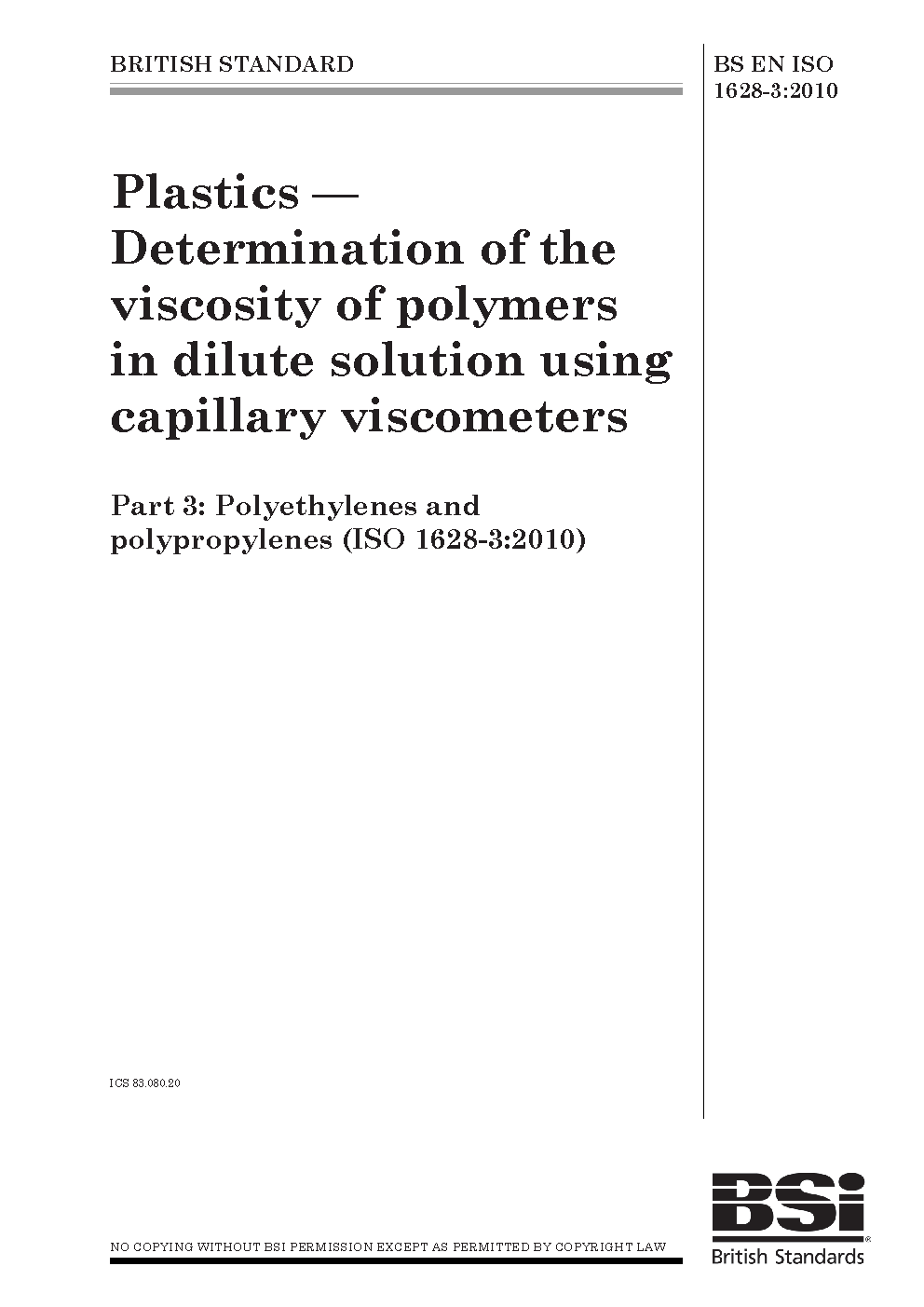Plastics. Determination of the viscosity polymers in dilute solution using capillary viscometers Polyethylenes and polypropylenes