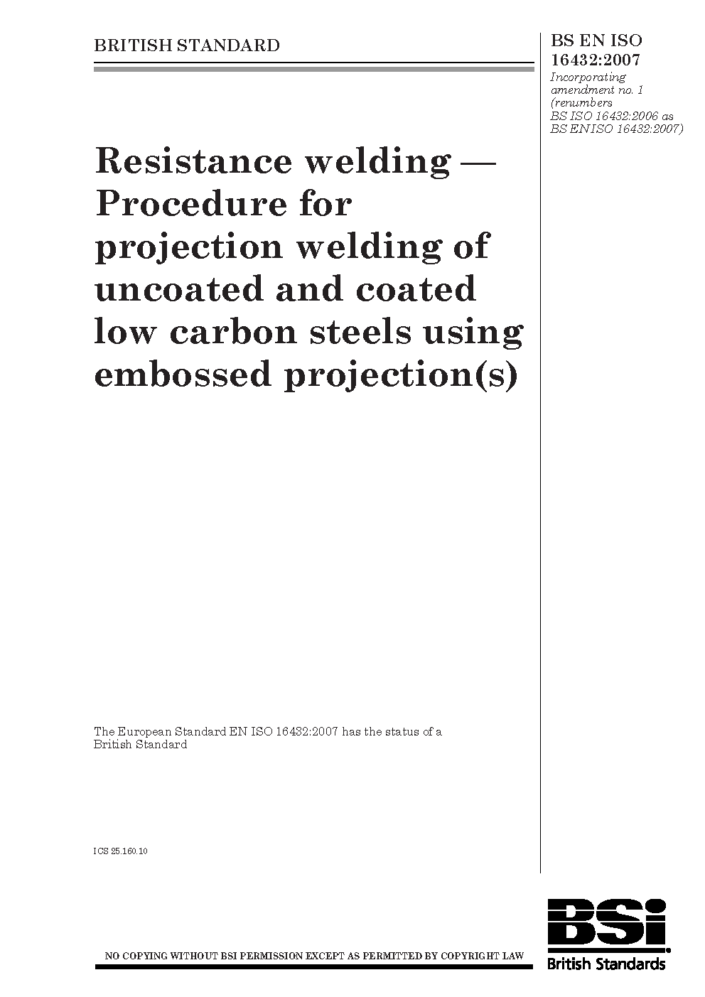Resistance welding. Procedure for projection welding of uncoated and coated low carbon steels using embossed projection(s)