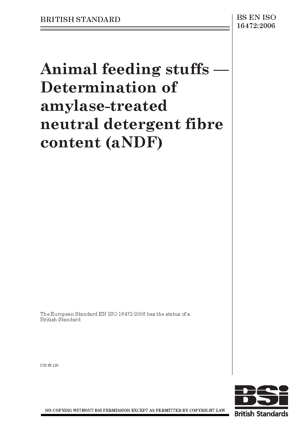 Animal feeding stuffs. Determination of amylase-treated neutral detergent fibre content (aNDF)