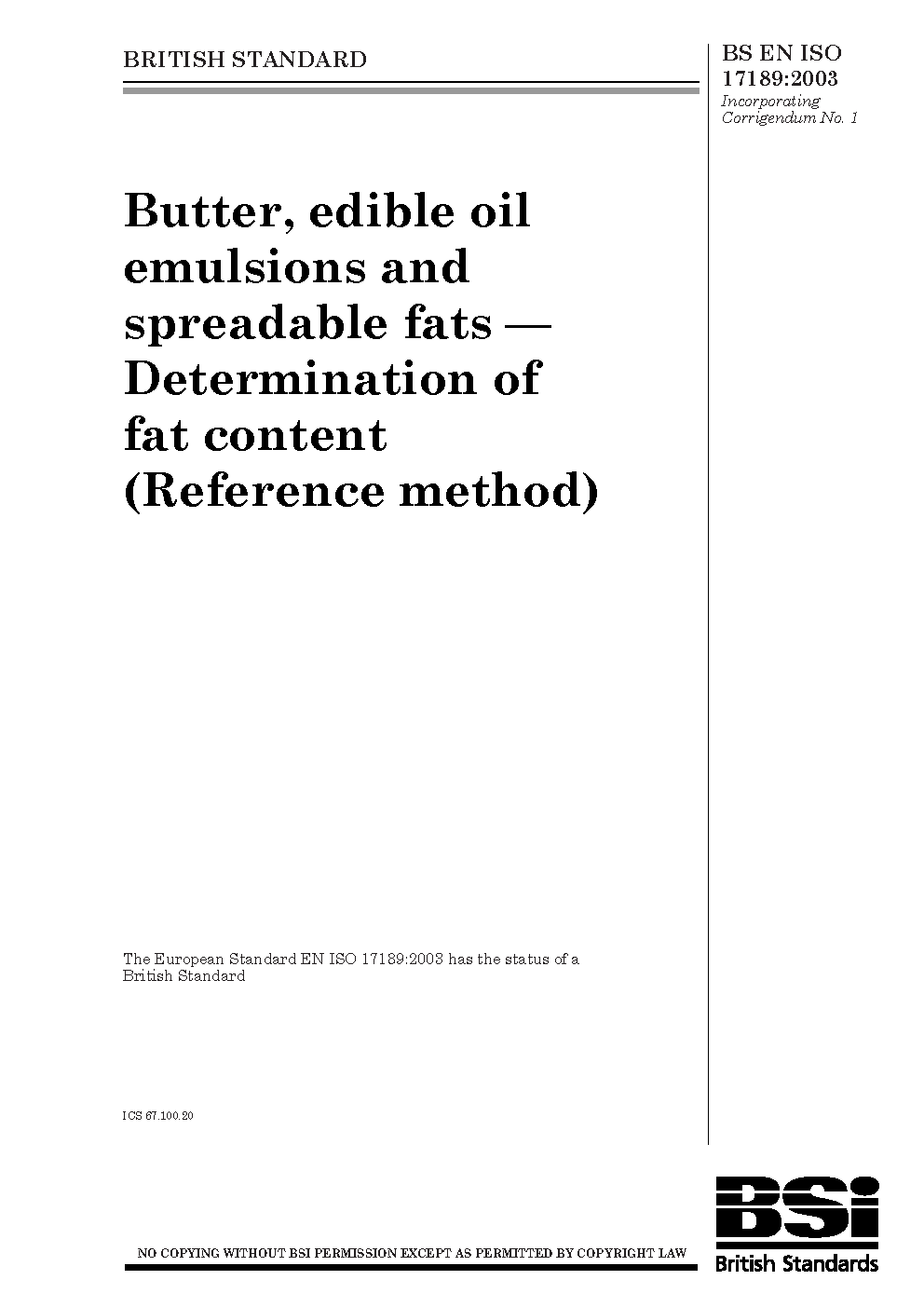 Butter, edible oil emulsions and spreadable fats. Determination of fat content (Reference method)