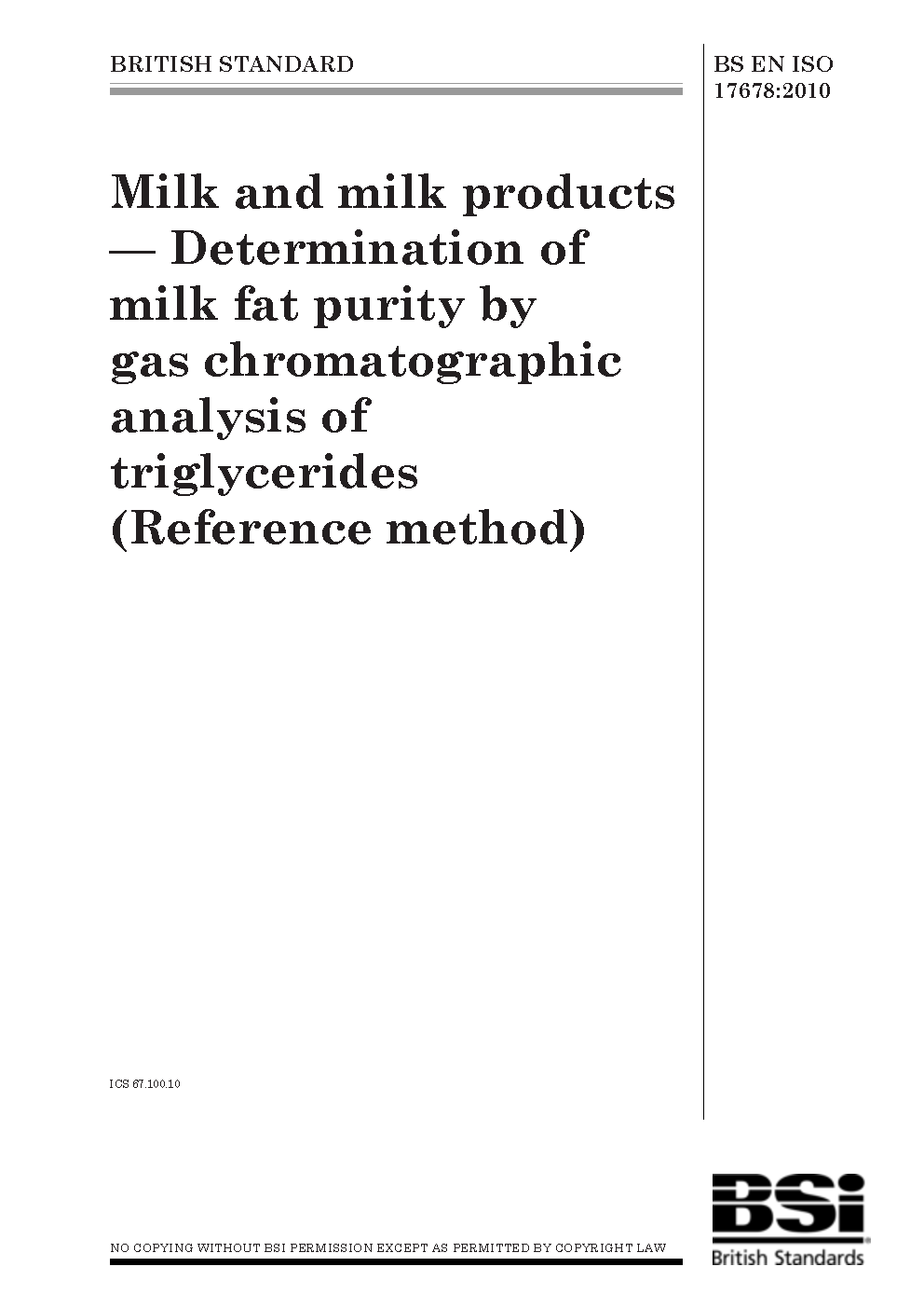 Milk and milk products. Determination of milk fat purity by gas chromatographic analysis of triglycerides