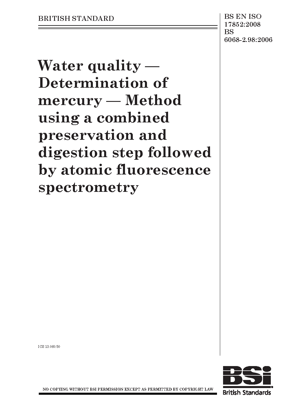 Water quality. Determination of mercury. Method using a combined preservation and digestion step followed by atomic fluorescence spectrometry