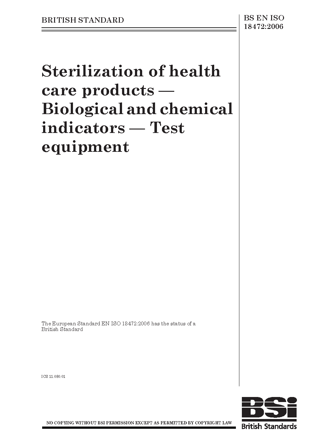 Sterilization of health care products. Biological and chemical indicators. Test equipment and methods
