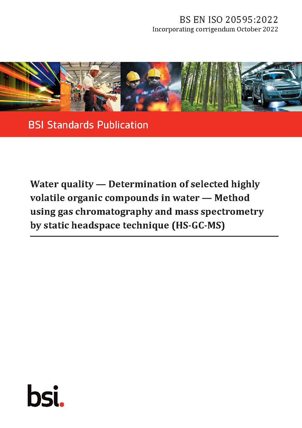 Water quality. Determination of selected highly volatile organic compounds in water. Method using gas chromatography and mass spectrometry by static headspace technique (HS-GC-MS)