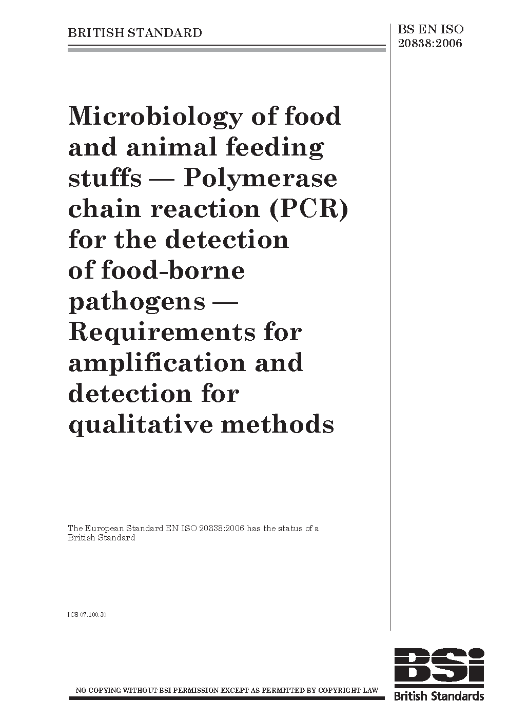 Microbiology of the food chain. Polymerase chain reaction (PCR) for the detection and quantification of microorganisms. General requirements and definitions