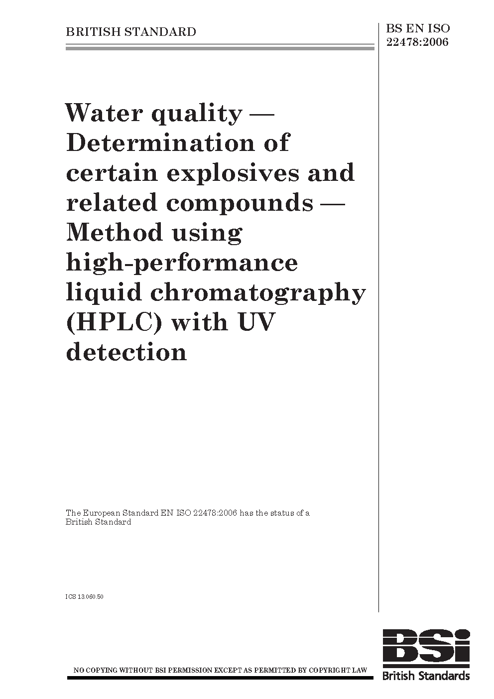 Water quality. Determination of certain explosives and related compounds. Method using high-performance liquid chromatography (HPLC) with UV detection