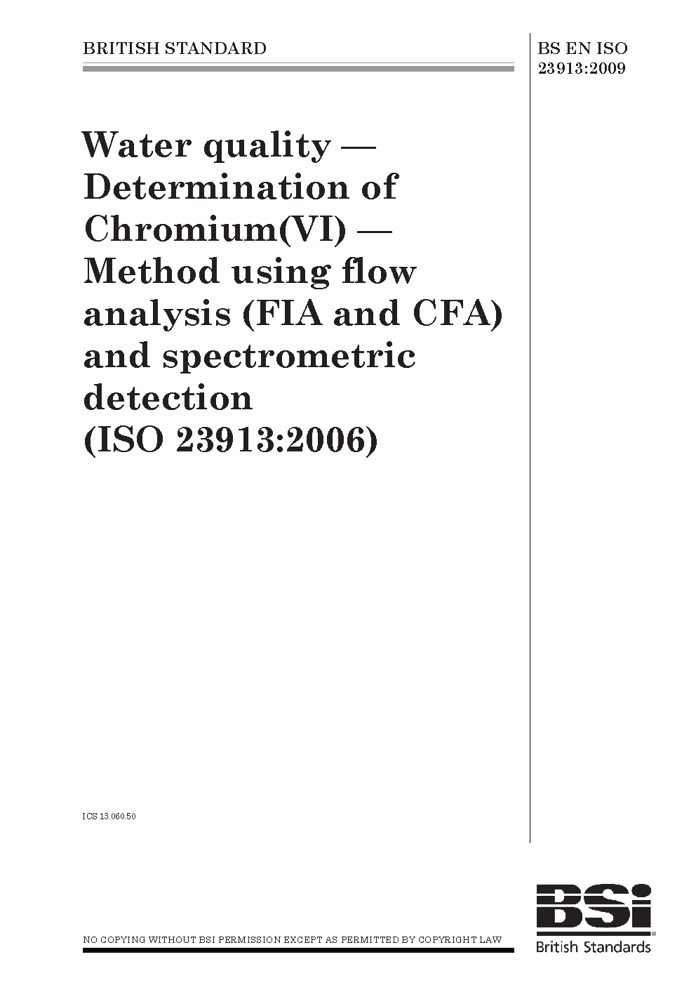Water quality. Determination of Chromium(VI). Method using flow analysis (FIA and CFA) and spectrometric detection