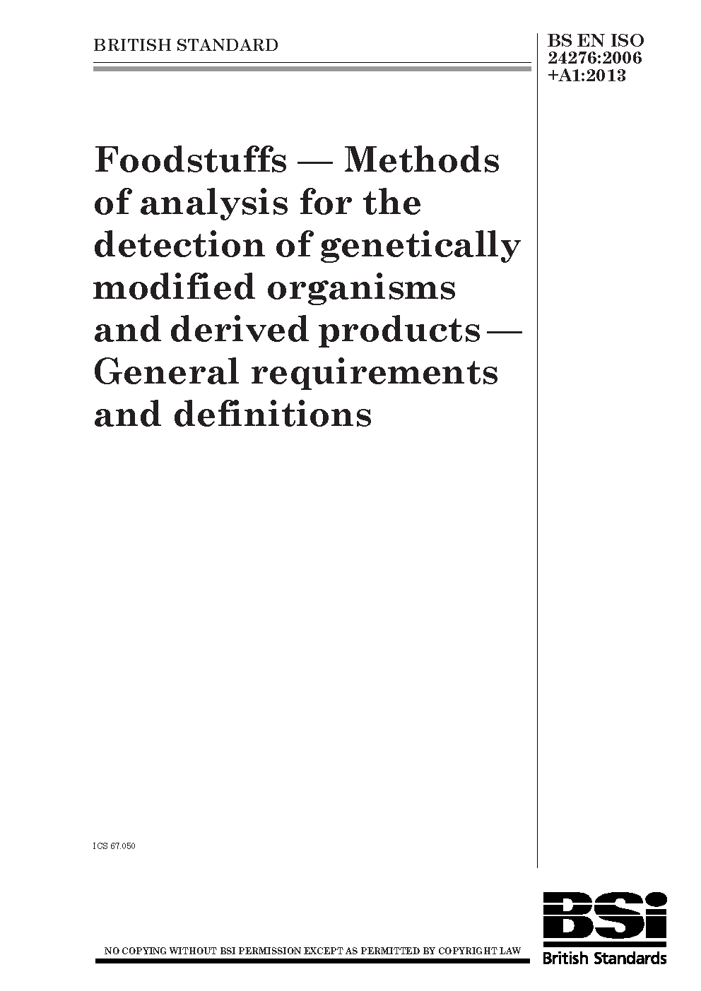 BS EN ISO 24276:2006+A1:2013