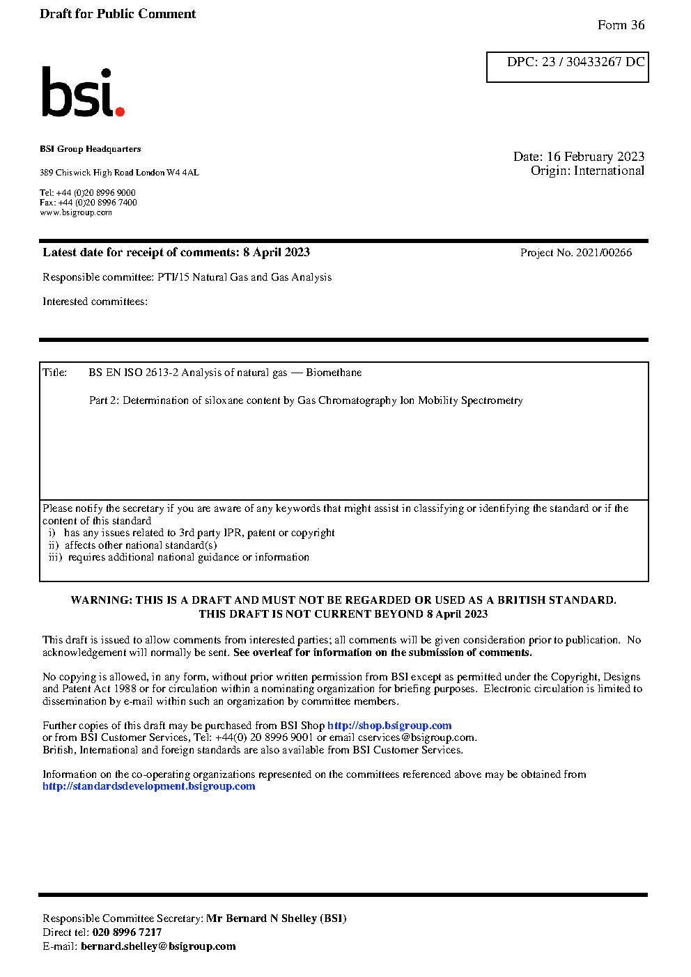 Analysis of natural gas. Silicon content biomethane Determination siloxane by gas chromatography with ion mobility spectrometry