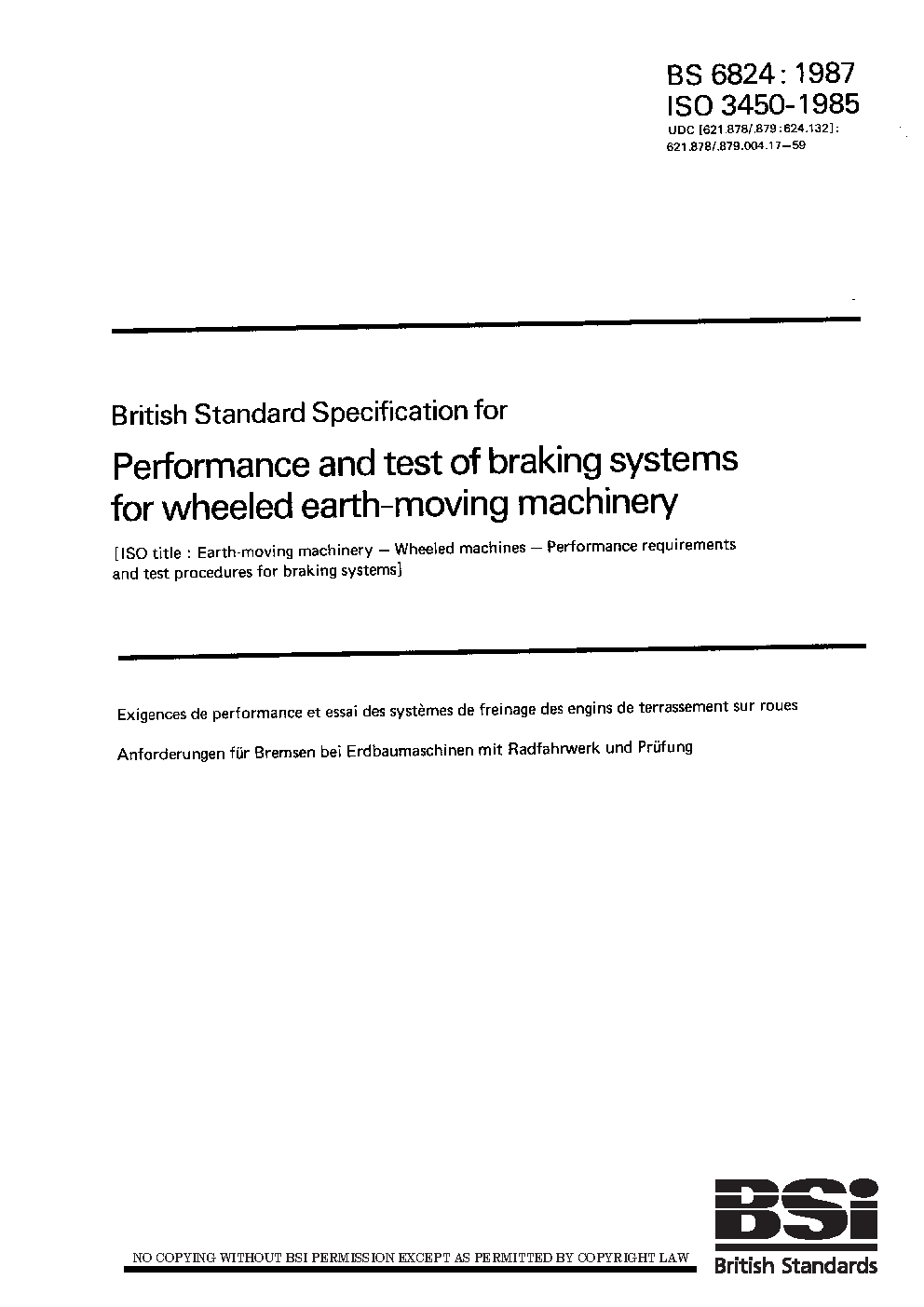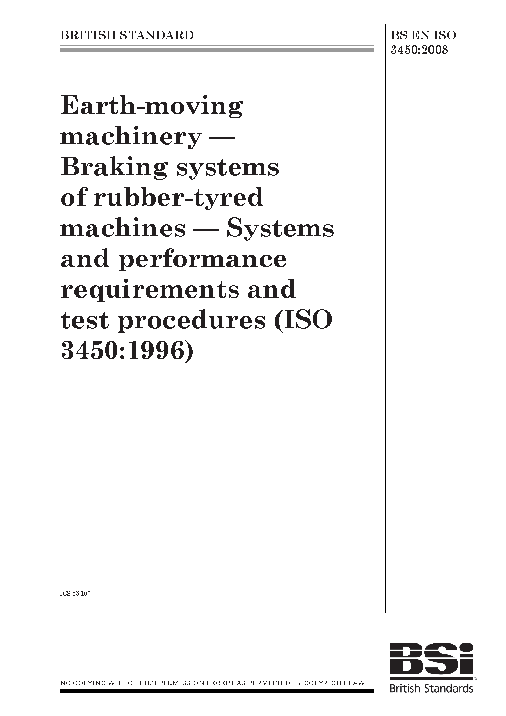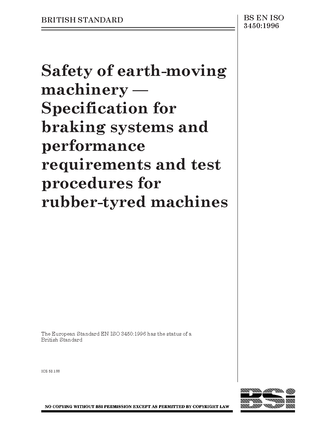 Safety of earth-moving machinery. Specification for braking systems and performance requirements and test procedures for rubber-tyred machines