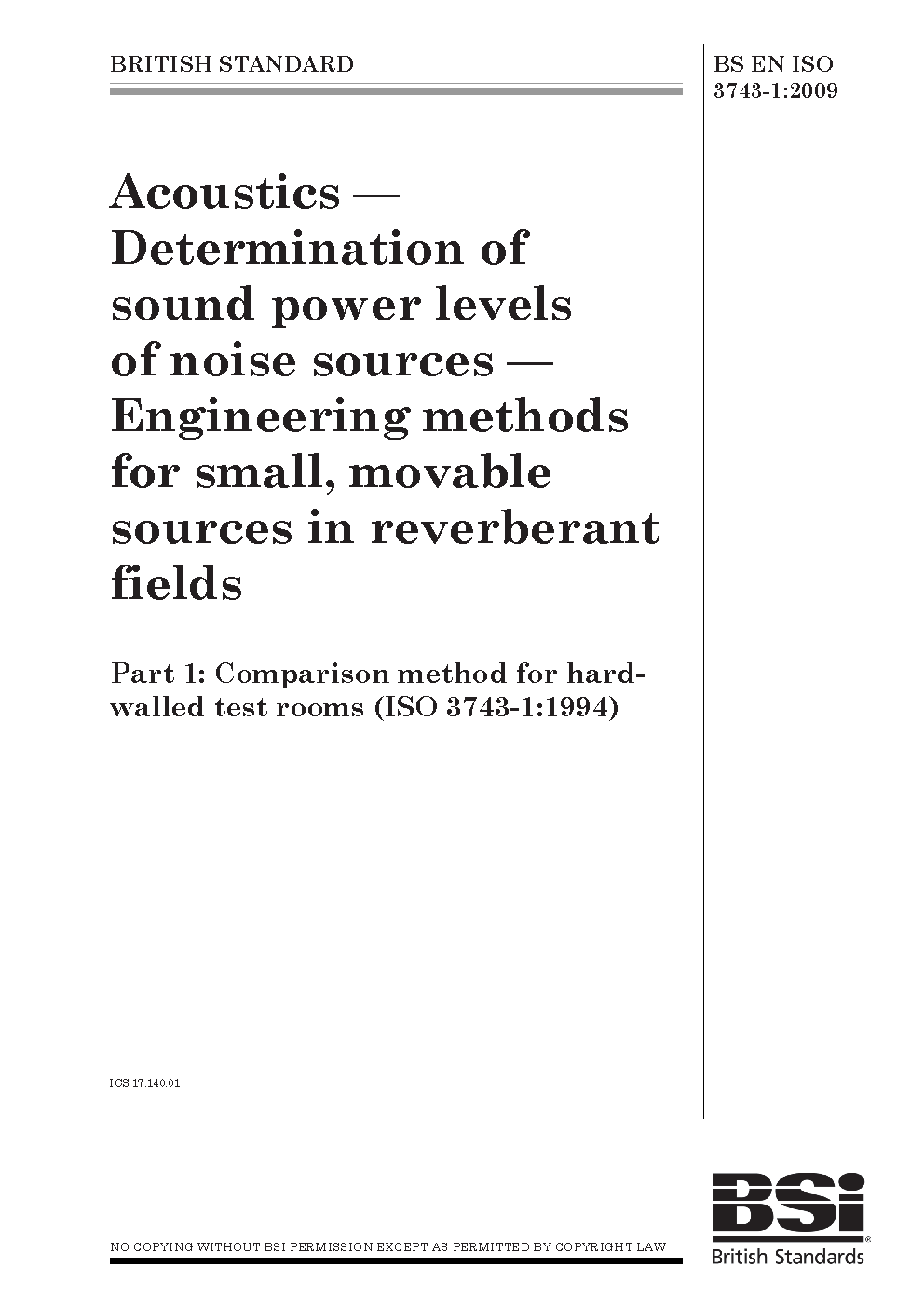 Acoustics. Determination of sound power levels noise sources. Engineering methods for small, movable sources in reverberant fields Comparison method hard-walled test rooms