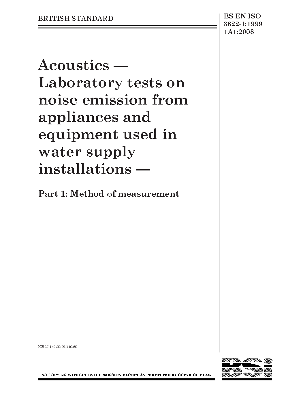 BS EN ISO 3822-1:1999+A1:2008