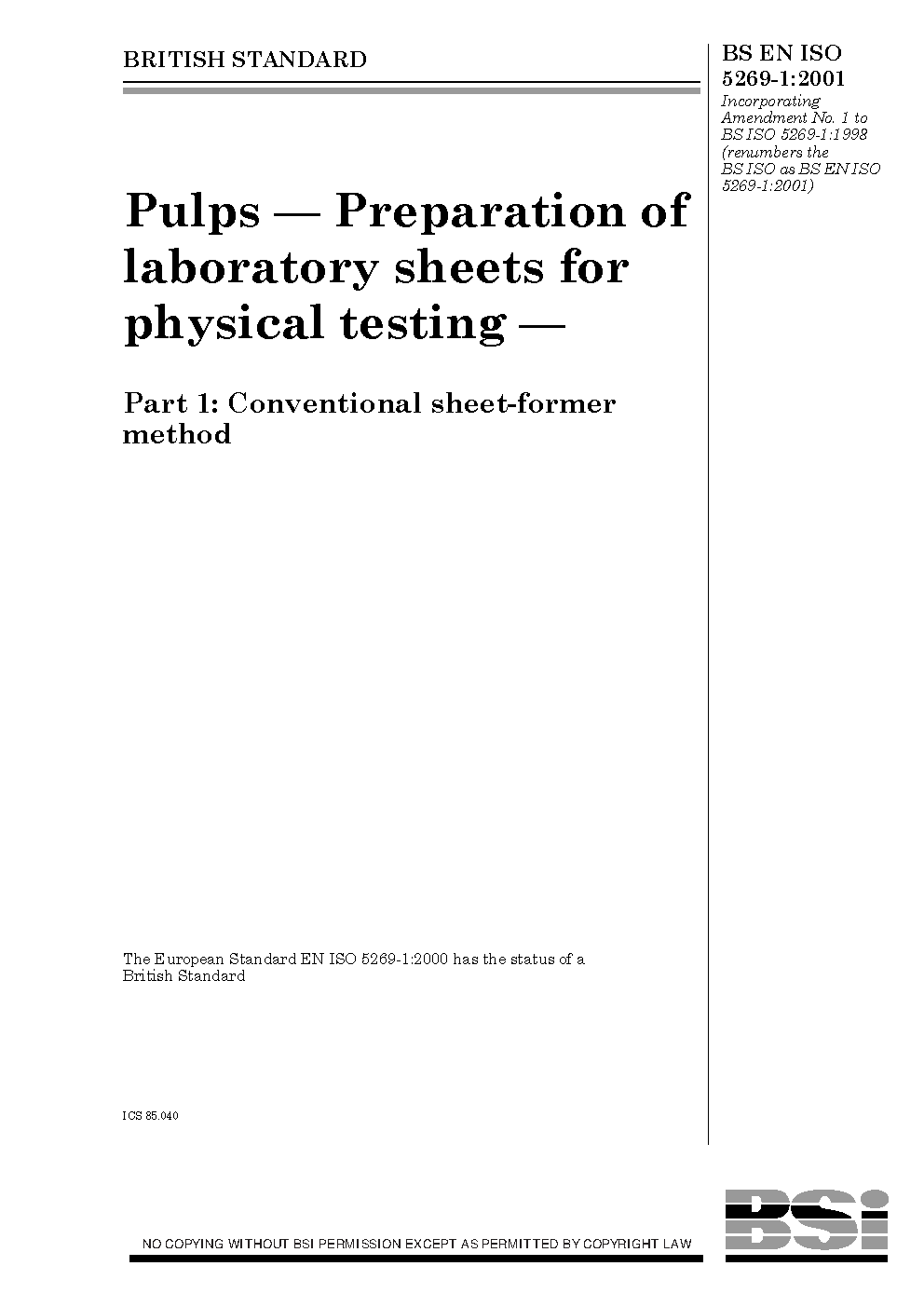 BS EN ISO 5269-1:2001