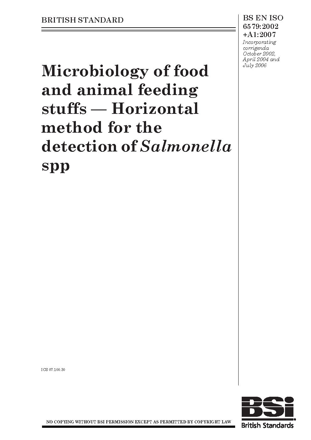 BS EN ISO 6579:2002+A1:2007