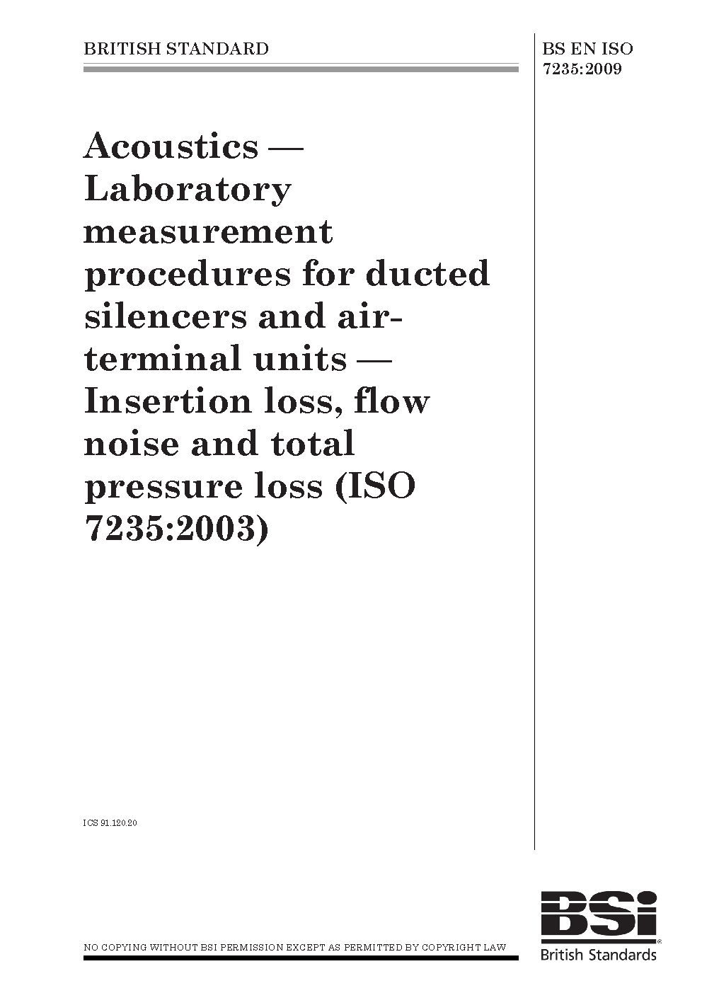 Acoustics. Laboratory measurement procedures for ducted silencers and air-terminal units. Insertion loss, flow noise and total pressure loss