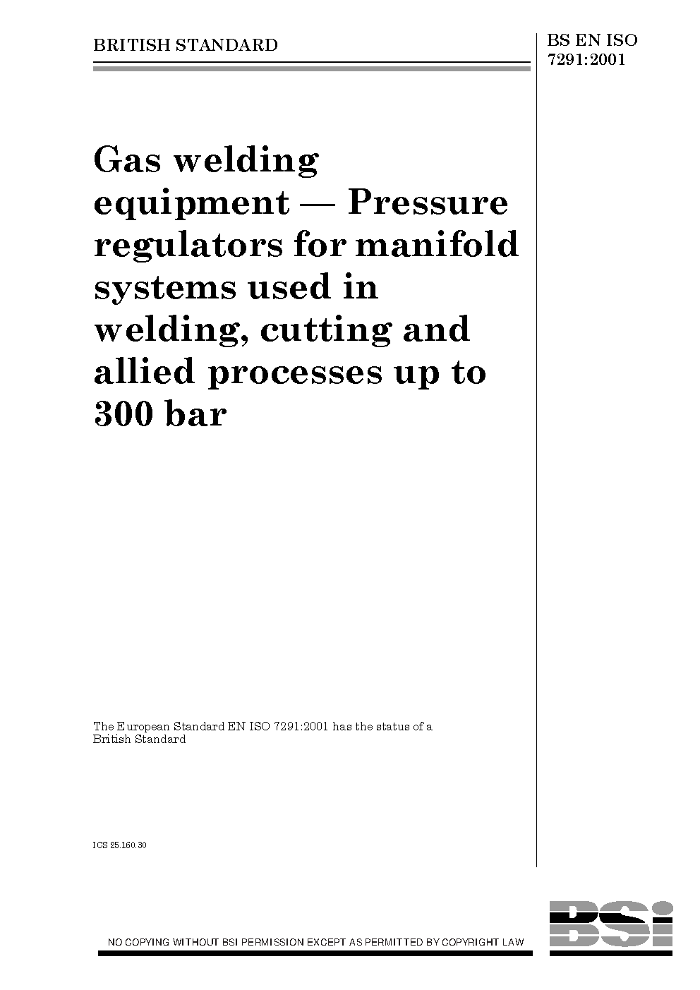 Gas welding equipment. Pressure regulators for manifold systems used in welding, cutting and allied processes up to 30 MPa (300 bar)