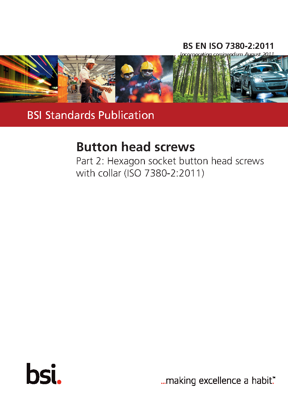 Raised-head fasteners;Fasteners;Collars (mechanical components);Screws (bolts);Threaded fasteners;Socket-head fasteners;Button-head fasteners;Dimensions;Finishes;Hexagonal-head fasteners;Steels;Threads;Tensile strength;Dimensional tolerances