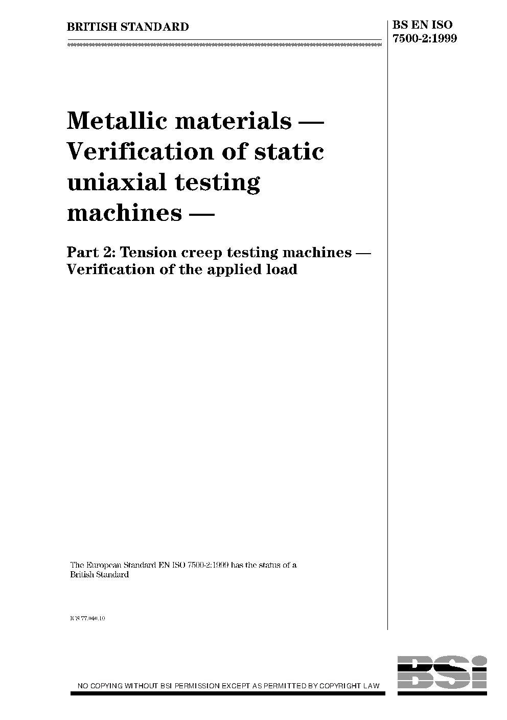 Metallic materials. Verification of static uniaxial testing machines Tension creep machines. the applied load