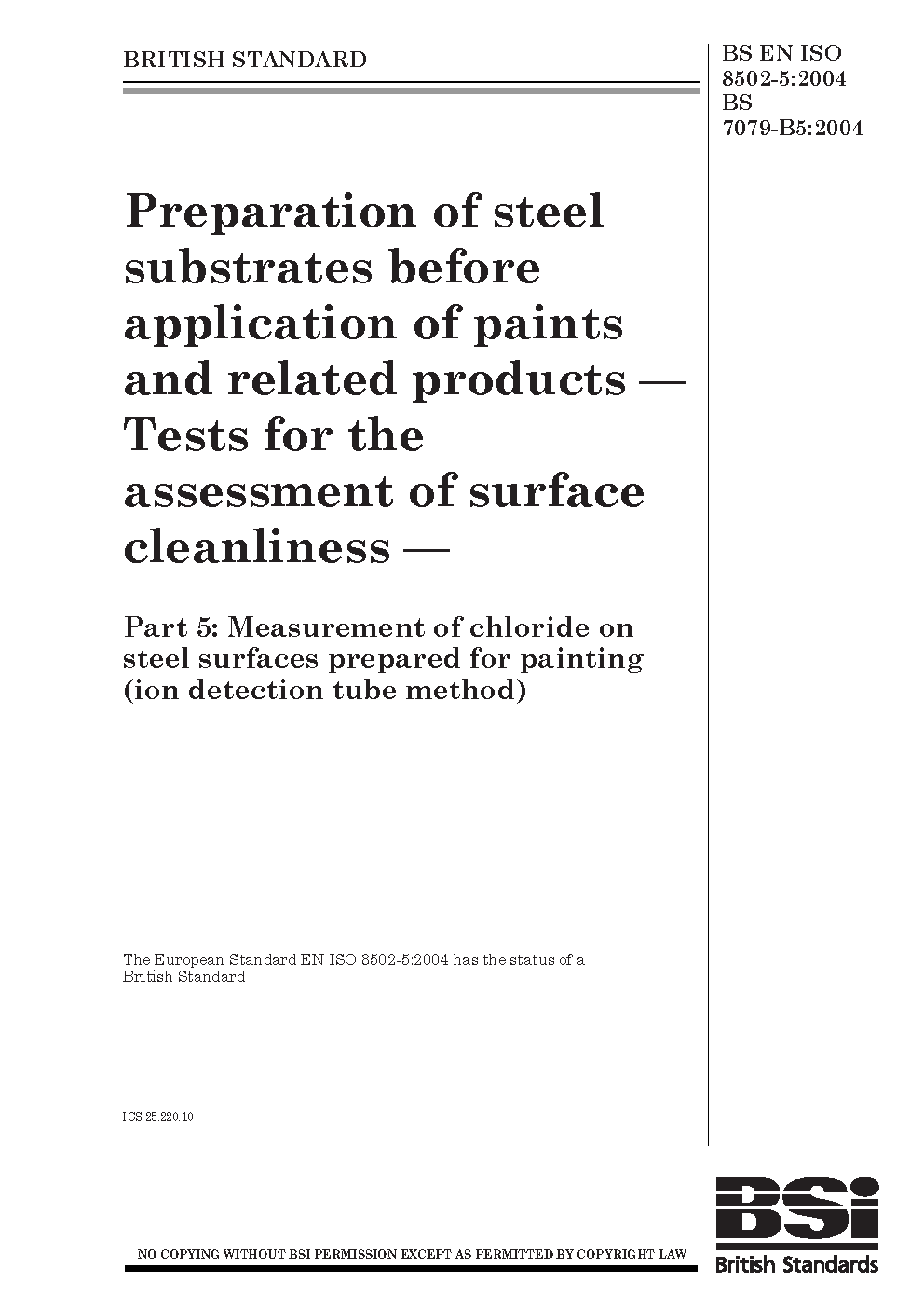 BS EN ISO 8502-5:2004