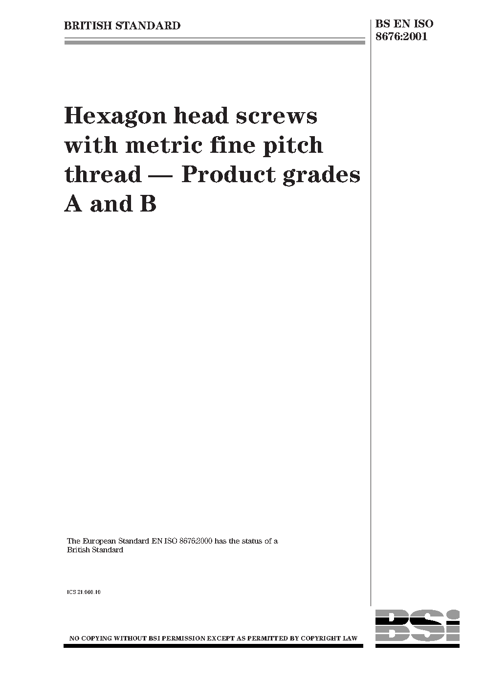 Fasteners. Hexagon head screws, with fine pitch thread. Product grades A and B