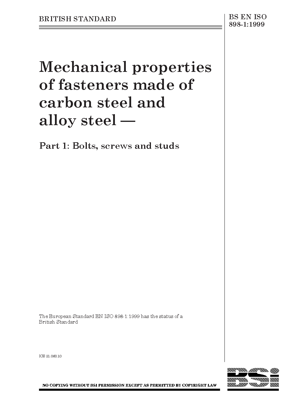 Mechanical properties of fasteners made carbon steel and alloy Bolts, screws studs with specified property classes. Coarse thread fine pitch