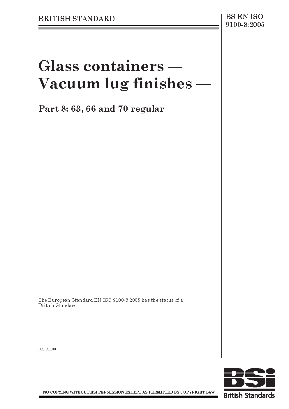 Glass containers. Vacuum lug finishes 63, 66 and 70 regular