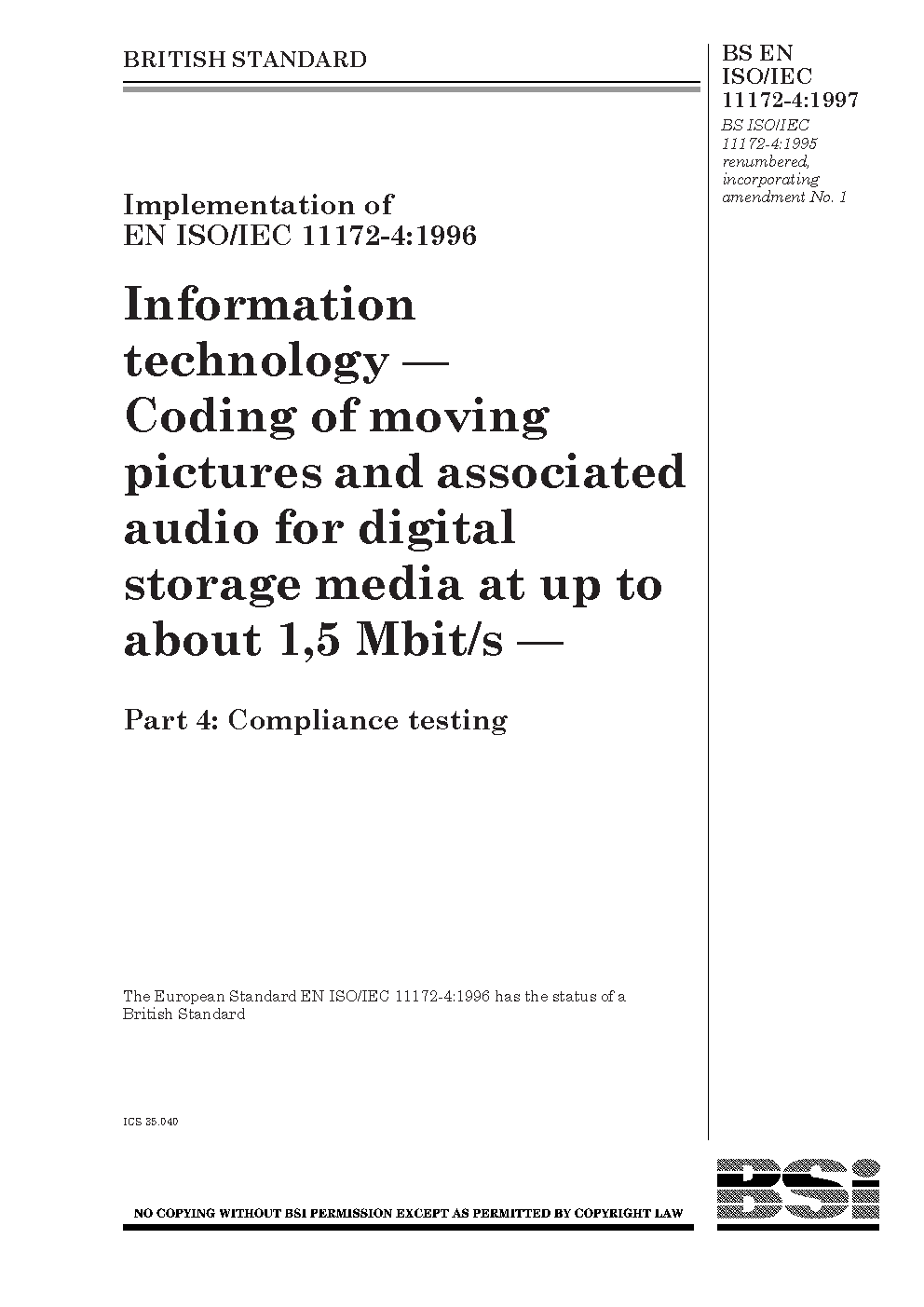 BS EN ISO/IEC 11172-4:1997