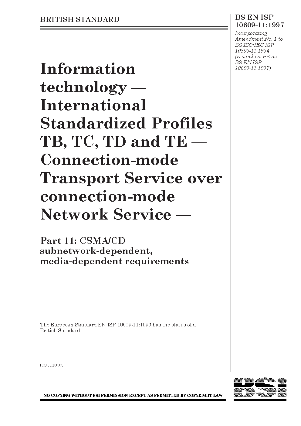 BS EN ISP 10609-11:1997
