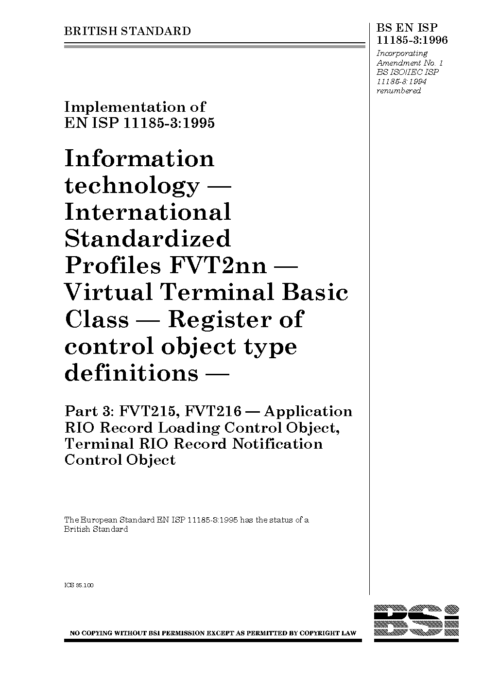 Information technology. International standardized profiles FVT2nn. Virtual terminal basic class. Register of control object type definitions FVT215, FVT216. Application RIO record loading object, terminal, notification