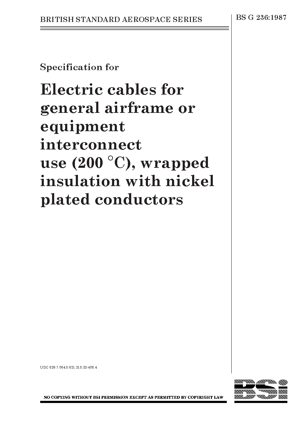 Specification for electric cables for general airframe or equipment interconnect use (200°C), wrapped insulation with nickel plated conductors