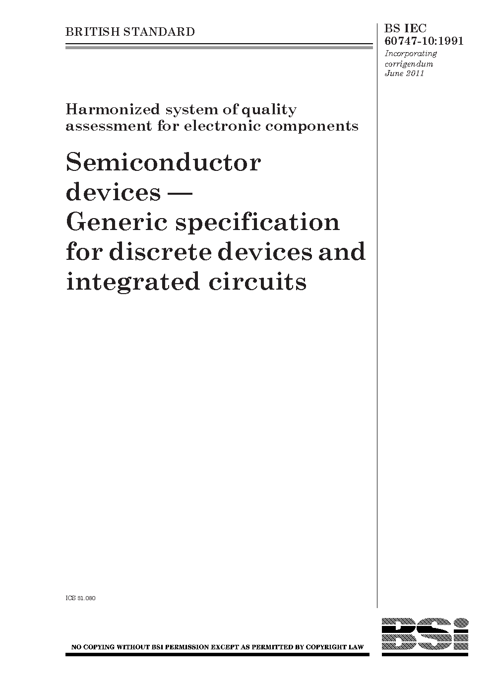 Semiconductor devices Generic specification for discrete and integrated circuits