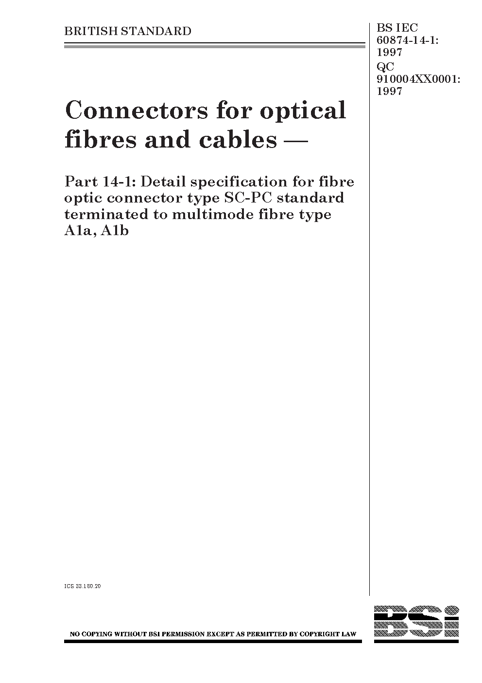 Connectors for optical fibres and cables Detail specification fibre optic connector type SC-PC standard terminated to multimode A1a, A1b