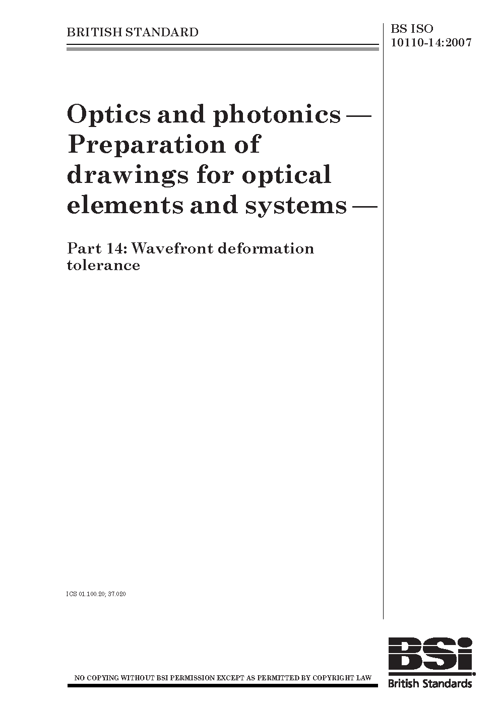 Optics and photonics. Preparation of drawings for optical elements systems Wavefront deformation tolerance