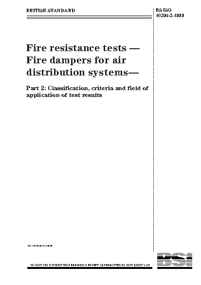 Fire-resistance tests. Fire dampers for air distribution systems Classification, criteria and field of application test results