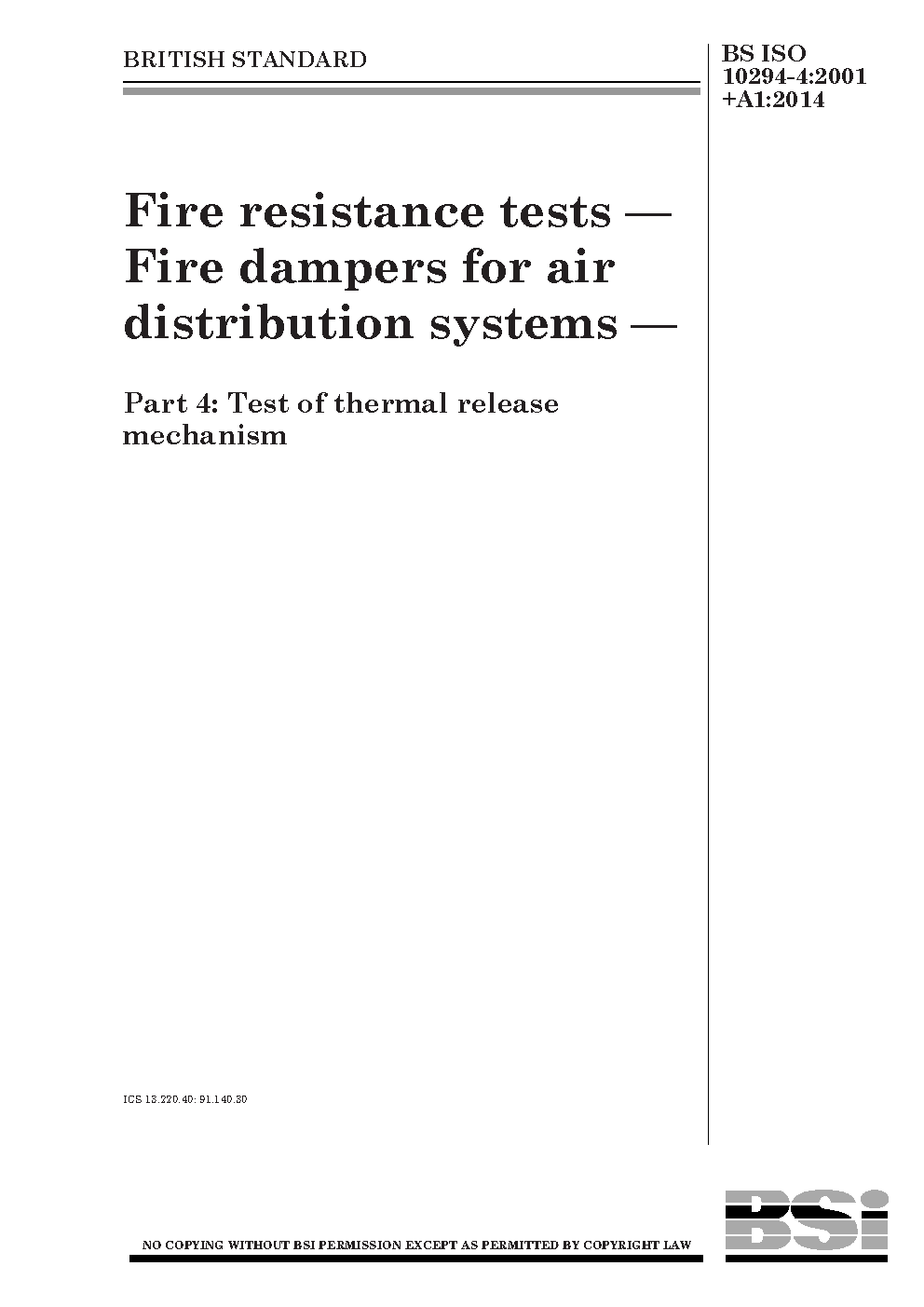 BS ISO 10294-4:2001+A1:2014
