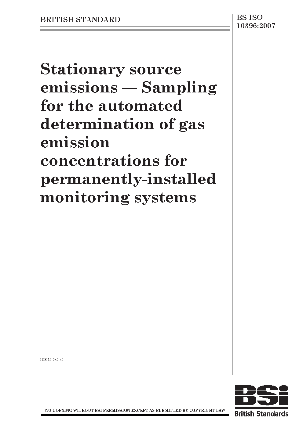 Stationary source emissions. Sampling for the automated determination of gas emission concentrations for permanently-installed monitoring systems