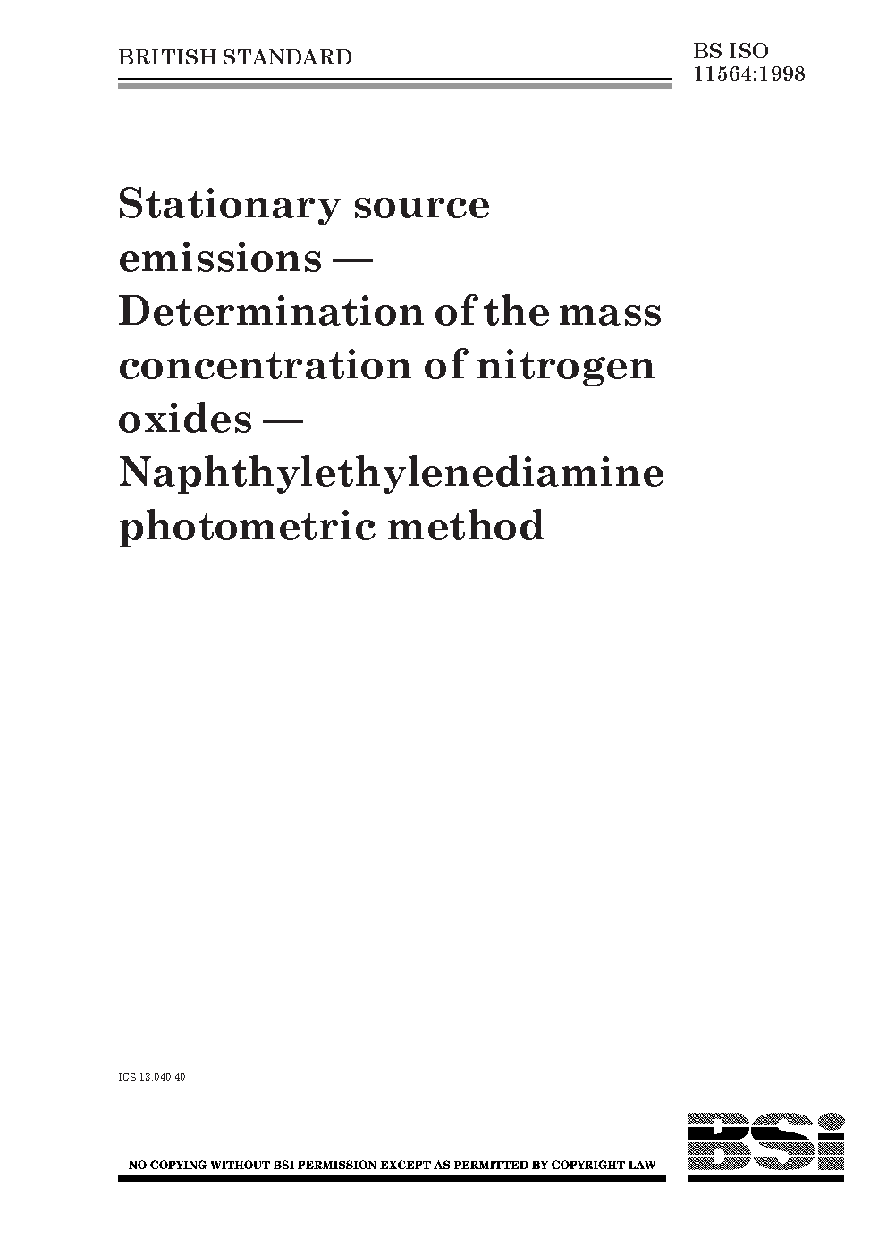 Stationary source emissions. Determination of the mass concentration of nitrogen oxides. Naphthylethylenediamine photometric method