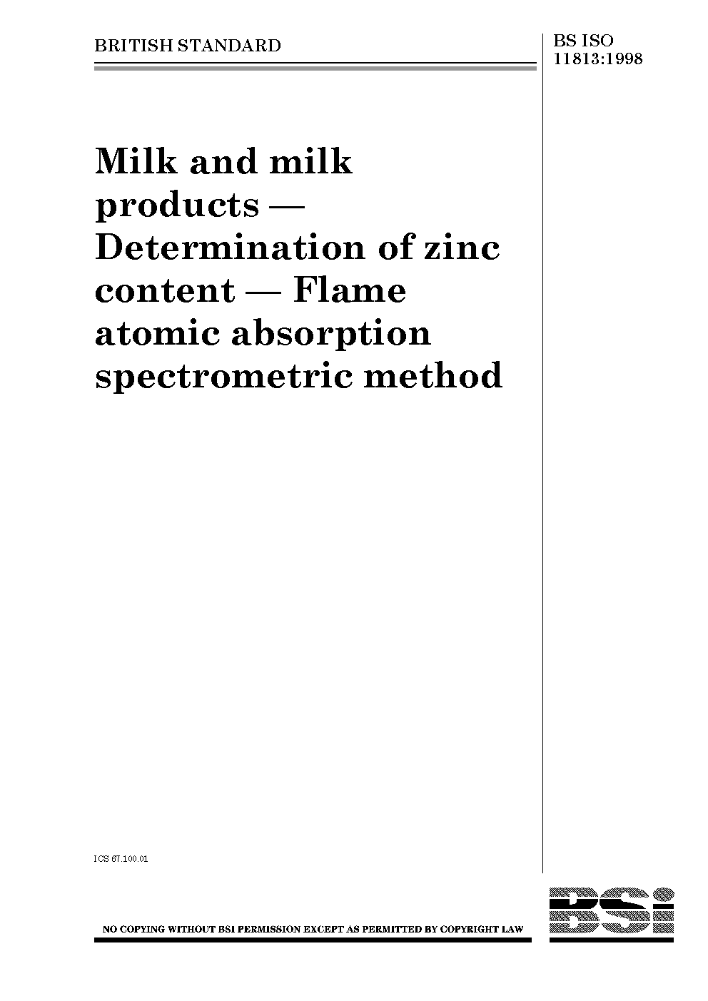 Atomic absorption spectrophotometry;Food products;Flame atomic absorption spectrometry;Zinc;Chemical analysis and testing;Reproducibility;Dairy products;Food testing;Milk;Determination of content