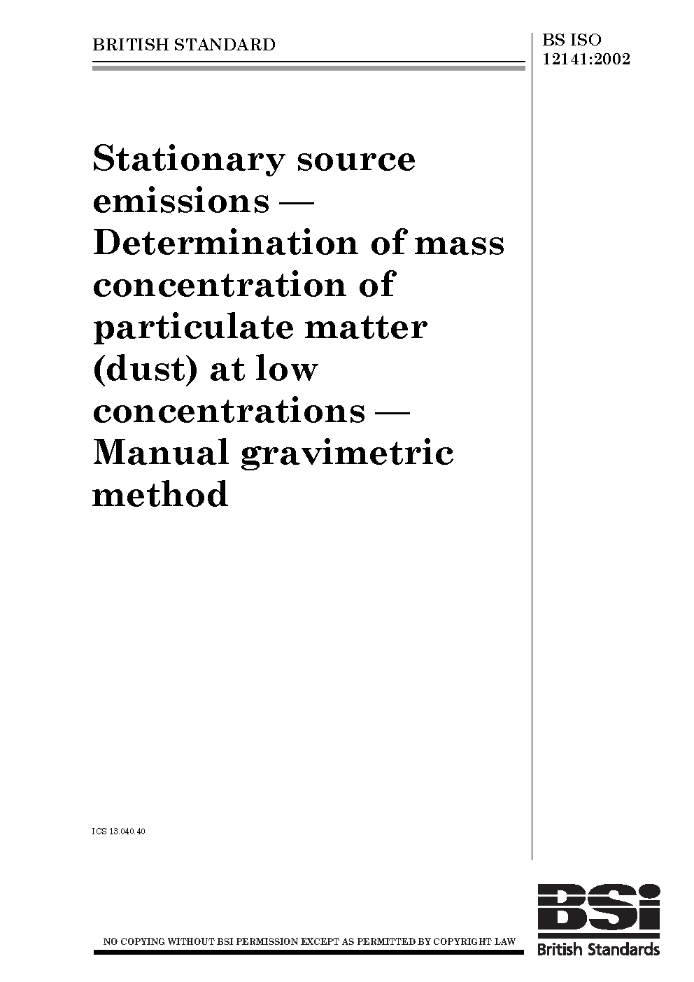 Stationary source emissions. Determination of low range mass concentration of dust. Manual gravimetric method