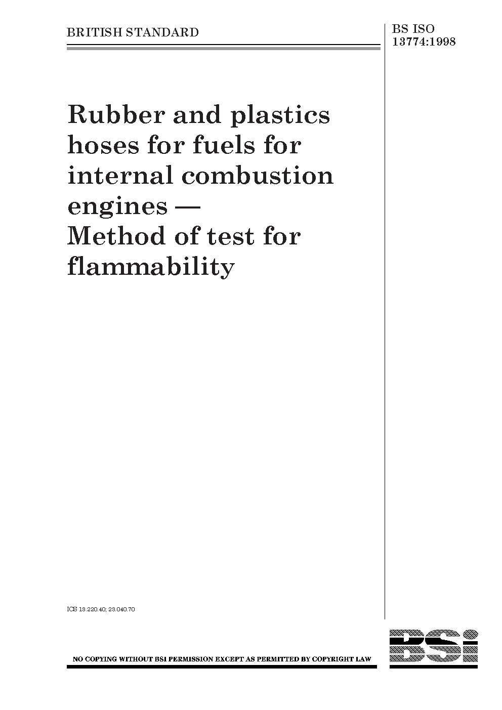 Flexible pipes;Internal combustion engines;Automotive fuels;Fire tests;Plastics;Flammability;Test specimens;Synthetic rubber;Natural rubber;Specimen preparation;Engine components;Fuels;Diameter;Gasoline