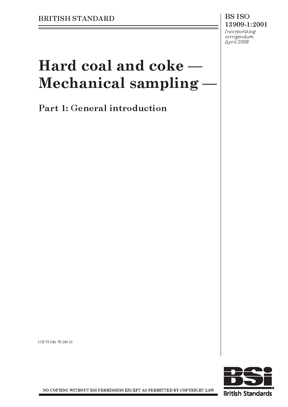 BS ISO 13909-1:2001