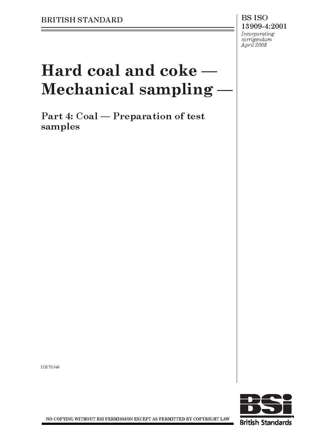 Hard coal and coke. Mechanical sampling Coal. Preparation of test samples