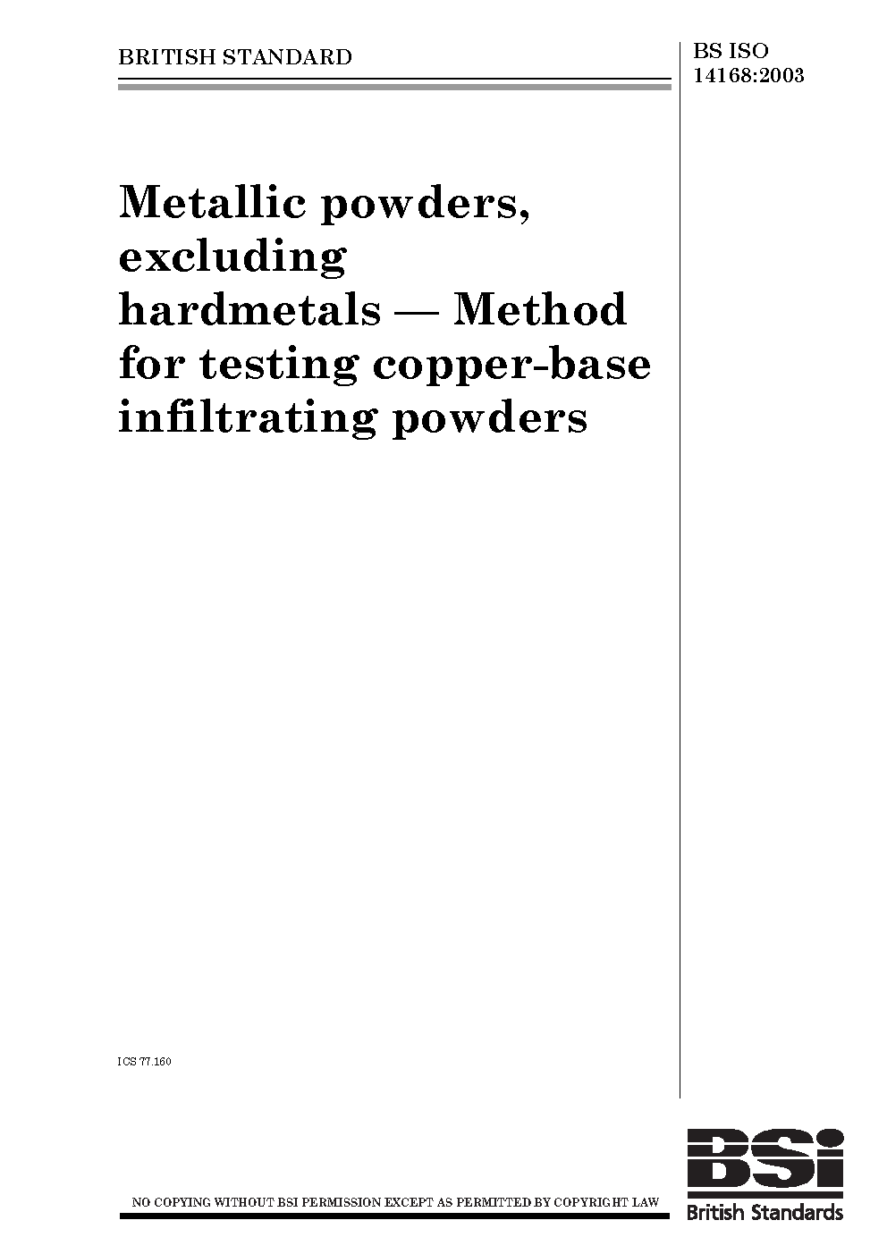 Metallic powders, excluding hardmetals. Method for testing copper-base infiltrating powders