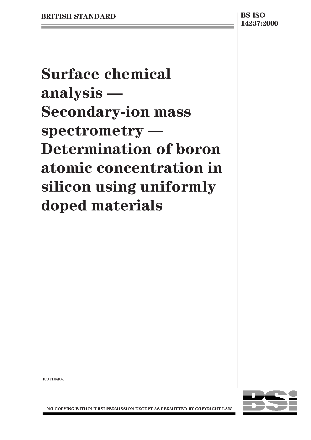 Surface chemical analysis. Secondary-ion mass spectrometry. Determination of boron atomic concentration in silicon using uniformly doped materials