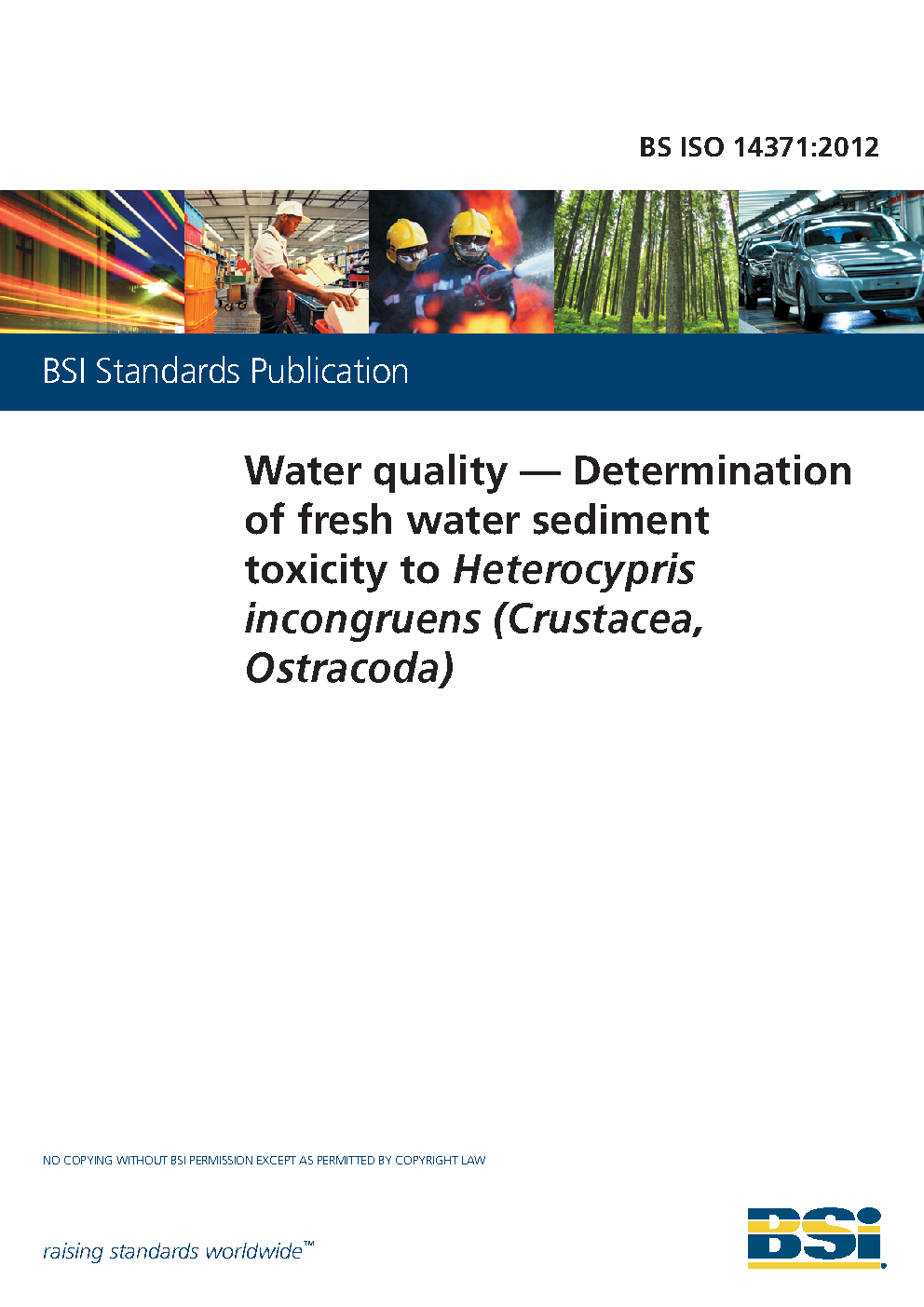 Water quality. Determination of fresh water sediment toxicity to Heterocypris incongruens (Crustacea, Ostracoda)