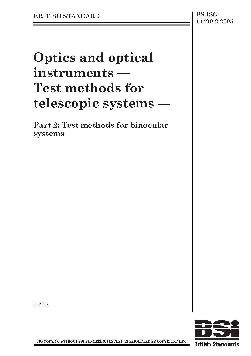 Optics and optical instruments. Test methods for telescopic systems binocular