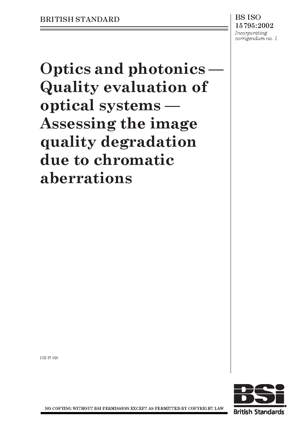 Optics and photonics. Quality evaluation of optical systems. Assessing the image quality degradation due to chromatic aberrations