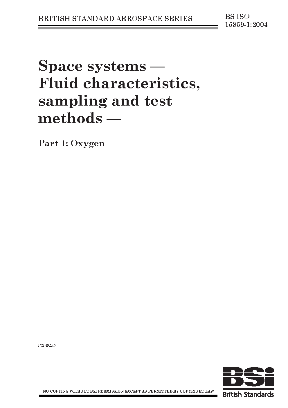 Aerospace series. Space systems. Fluid characteristics, sampling and test methods Oxygen