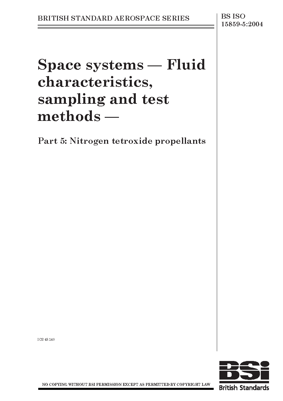 Aerospace series. Space systems. Fluid characteristics, sampling and test methods Nitrogen tetroxide propellants