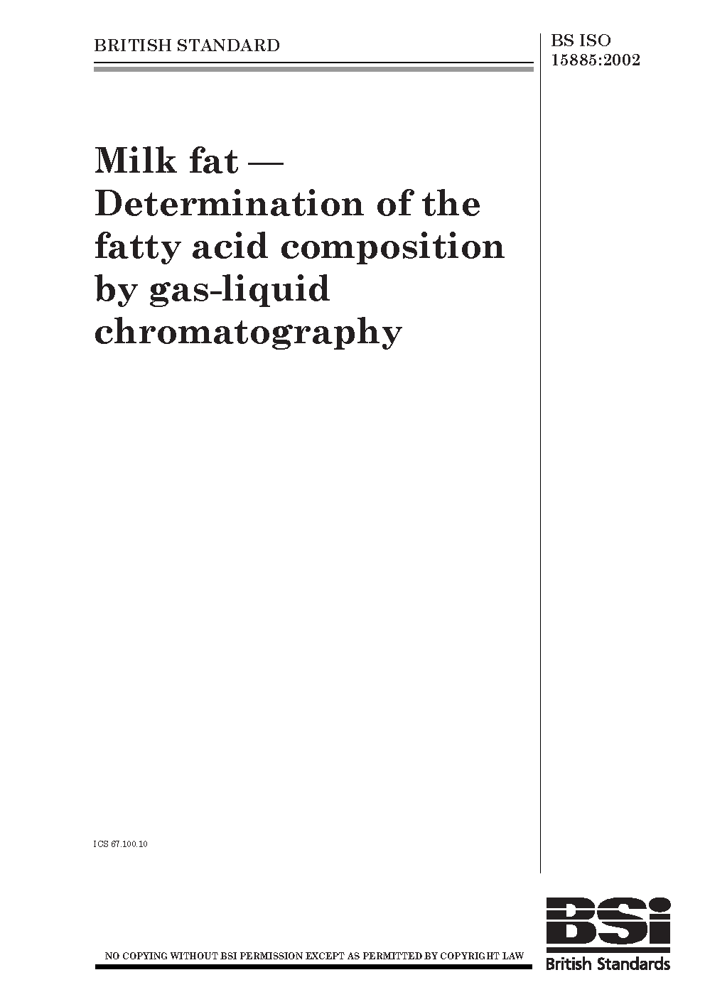 Milk fat. Determination of fatty acid composition by gas-liquid chromatography